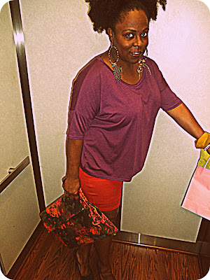 I love this color blocking! You look fabulous, and the purple and red is an excellent combination.